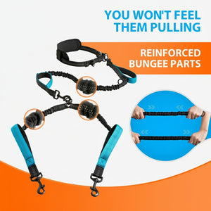 Hands-Free Running Dog Leash - Dual Leash Bungee with Waist Belt for Jogging & Training