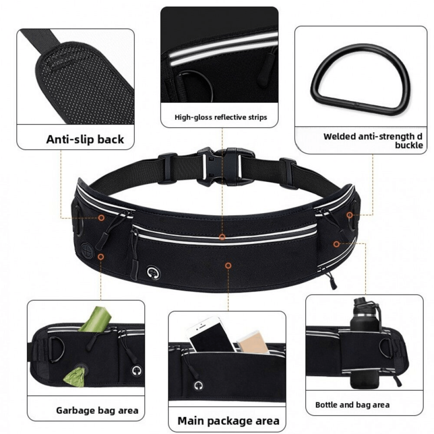 Experience the ultimate freedom with our multifunctional waterproof running waist bag designed for active pet owners. Whether you're jogging at dawn, running at night, or walking your dog, this ergonomic waist belt lets you carry essentials while safely controlling your pet - truly hands-free!